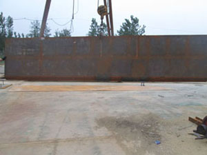 我公司生產(chǎn)的鋼壩是一種新型可調(diào)控溢流壩,它由土建結(jié)構(gòu)、帶固定軸的鋼性壩體、驅(qū)動裝置設(shè)備等組成。這種建筑物適合于河道孔口較寬(10米~100米)而水位差比較小的工況(1~6米),由于它可以設(shè)計得比較寬,可以省去數(shù)孔閘墩,所以不僅結(jié)構(gòu)簡單,可以節(jié)省不少土建投資,而且可以立壩蓄水,臥壩行洪排澇,還可以利用壩頂過水,形成人工瀑布的景觀效果。